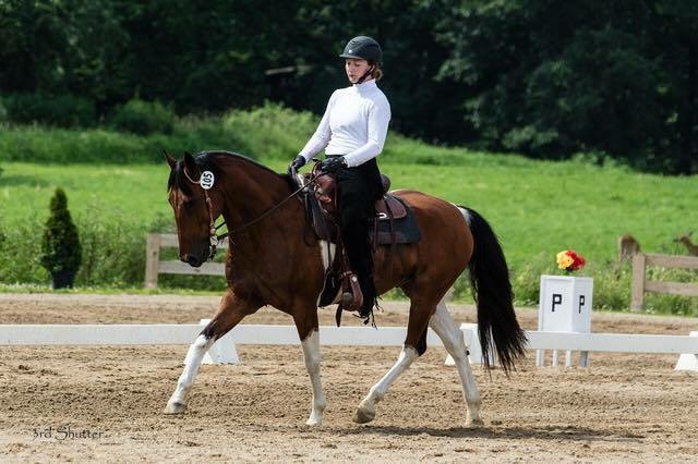 Jazz is an amazing example of how dressage can truly transform a horse and cultivate potential in any discipline. He is a very sweet and quiet 9-year-old American Paint gelding who came to me as a trail horse for additional training in the spring of 2014. Two trainers had previously told his owner that he would never do well at the canter, as his long back made it very challenging to use his hind end for collection work. After being introduced to western dressage by my coach, Sue Hughes, I saw in Jazz an excellent western dressage candidate. He was my first western dressage horse and I was excited to explore this new sport!