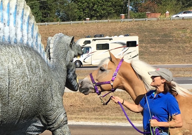 After this initial success in 2016, we decided to make the trip to Oklahoma for the World Show again in 2017. Once again, we had a blast finding places to stop and take pictures with Sabreena. We arrived at the Lazy E Arena on Tuesday afternoon and took the next day to settle in. On Thursday, I decided to try the open level hack class and managed to place third in a large carousel of horses and riders. Elaine again offered to coach me before each test and met me in the main arena on Friday, Saturday and Sunday afternoons to help me warm up for each test. With her help, we placed 4th in third level test 2 on Friday. On Saturday, we placed third in third level test 3. And on Sunday we placed 4th in third level test 4.